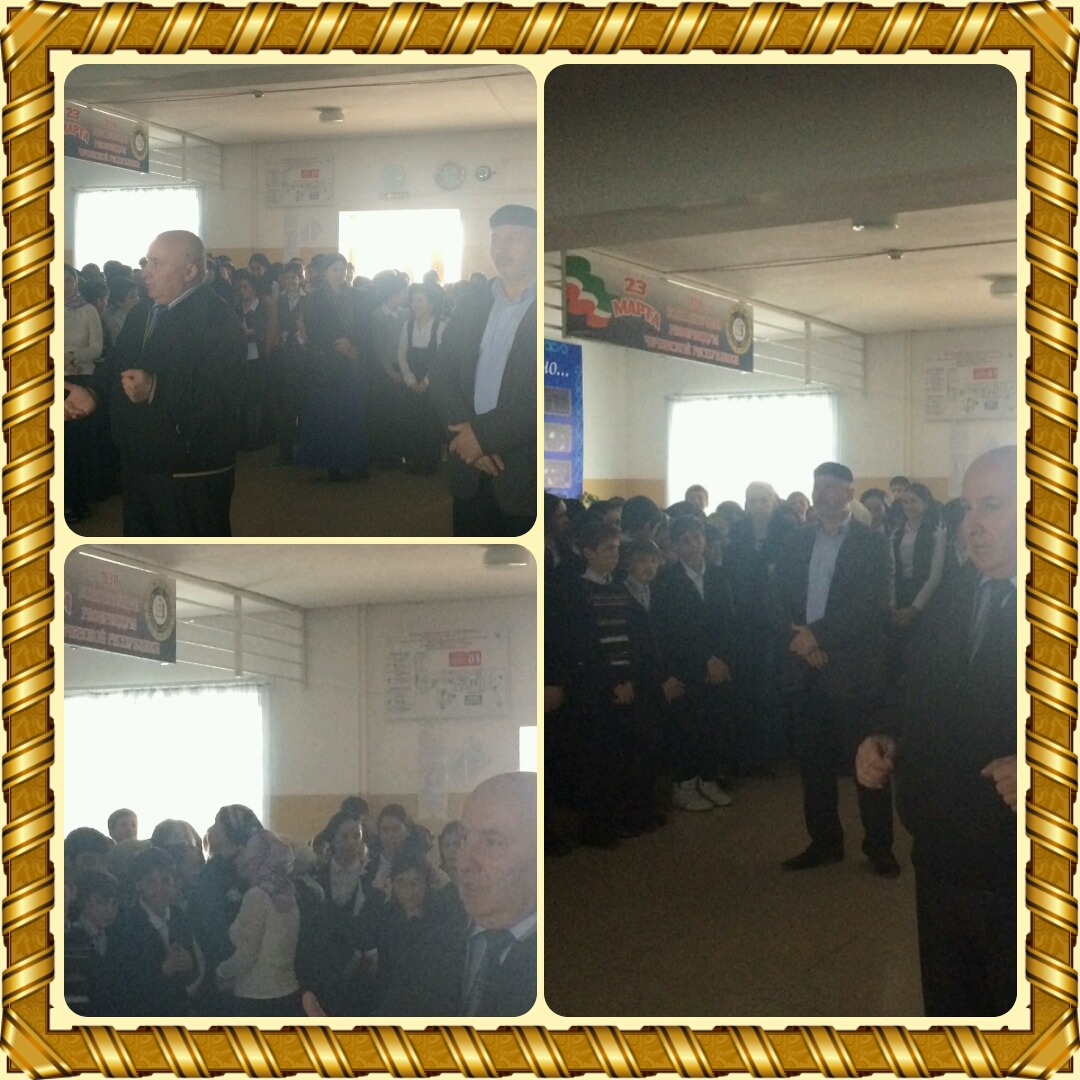 Сегодня в СОШ№2 с. Герменчук была проведена линейка, посвященная Референдуму Чеченской Республики и Конституции ЧР, а также присоединения Крыма к Росии